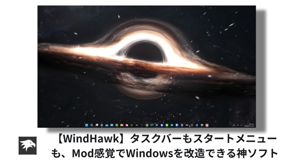 Windows 11の見た目をおしゃれにカスタマイズしたい方必見!神ツール「WindHawk」の使い方を徹底解説。タスクバーの透明化やMac風ドック、通知センターの改造など、安全にOSを改造できるおすすめMod 4選を紹介。